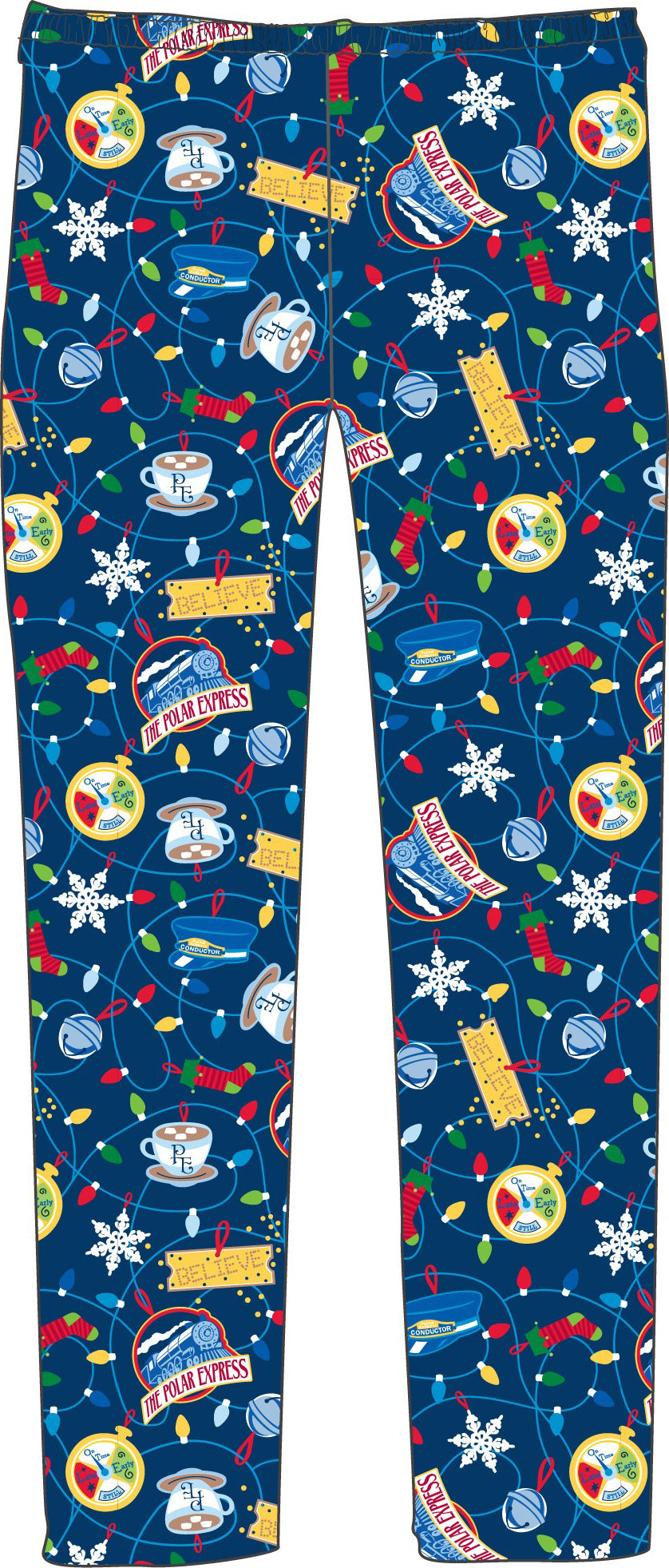 All Aboard! Your favorite THE POLAR EXPRESS ™ icons adorn this fun pajama set. Youth top is tee style with red ribbed neck and cuffs. 100% polyester jersey printed with train and logo.  Coordinating Youth bottoms are 100% polyester super soft thick cozy fleece.  Bottom pattern is train, bell, ticket, hot chocolate cup, conductor hat and watch icons.